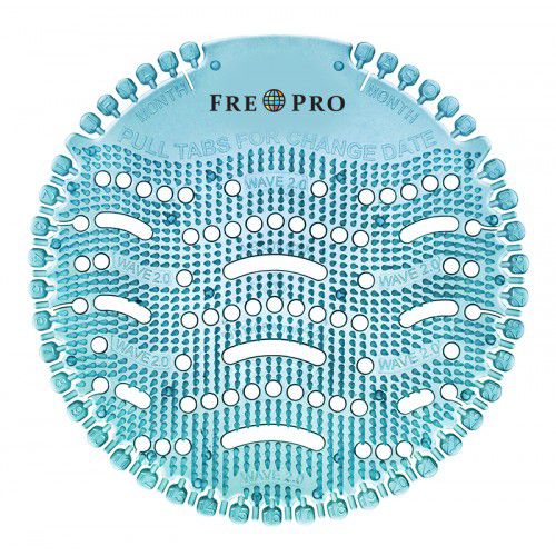 Aromatické a gelové vonné sítko FrePro Wave2 do pisoáru s indikátorem data výměny.Velice příjemná a decentní vůně, Květ bavlny,která je 15x intenzivnější než mají běžná vinylová sítka. Eliminuje pachy a optimizuje tvorbu bakterií, zabraňuje šíření pachů hned v jejich zárodku. Výrobce garantuje plnou účinnost po dobu 30 dnů. Speciálně vyvinutý design zajišťuje rychlejší a účinnější splachování obsahu pisoáru, mísa se průběžně čistí. Úspora času pro úklid až 50%. Transparentní design umožňuje průběžnou kontrolu stavu odpadních cest, účinněji brání ucpávání. V procesu působení sítko uvolňuje účinné bakterie– pohlcovače pachů a vonné látky, proto se mírně smršťuje. Kulatý tvar umožňuje umístění do každého typu pisoáru. Neobsahuje žádné látky poškozující ozon, ani žádné látky ohrožující lidské zdraví. Delší bodlinky účinněji zabraňují rozstřikávání moči, usnadňují očistu pisoáru a uvolňují více vůně do prostoru. Sítko se vkládá do pisoáru bodlinkami nahoru.
