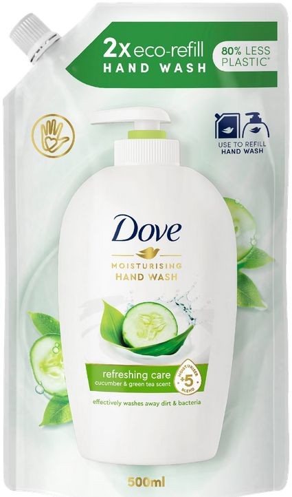 Popis Tekuté mýdlo DOVE, náplň-ECO 500 ml, cucumber-green tea dezinfekční 500 ml
