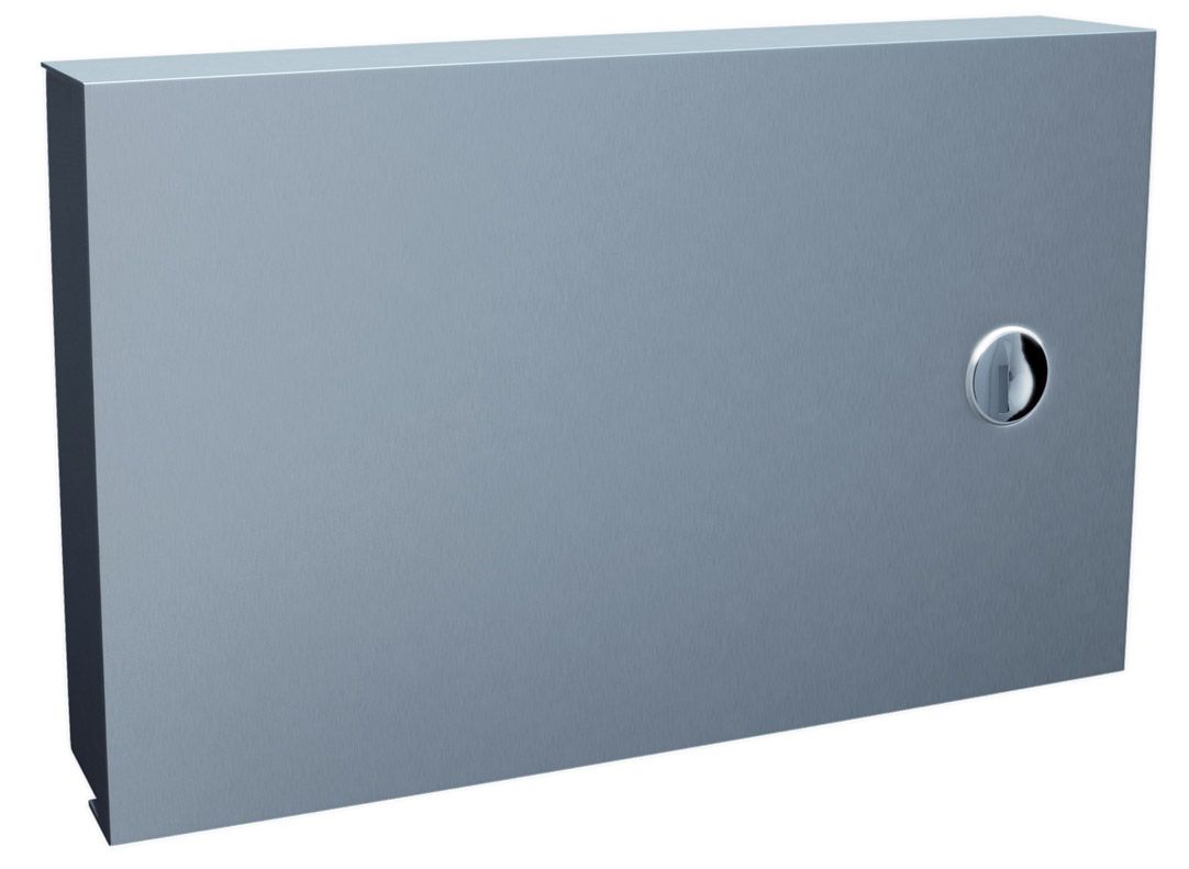 Je vyroben z ušlechtilé nerezové oceli. Obsahuje háček pro zavěšení jednorázových rukavic. Hrany jsou svařované a zabrušované. Zámek je zapuštěný do stěny výrobku. Uzamykatelný na klíč. Rozměry (š x v x h): 11 x 17 x 3 cm