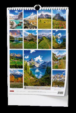 Nástěnný kalendář s obrázky známých hor z celého světa.