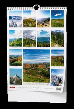 Nástěnný kalendář s obrázky krásných hor Čech a Moravy.