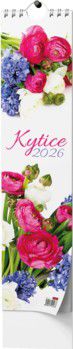 Netradiční nástěnný kalendář ve formátu kravaty s působivými obrázky kytic.