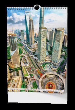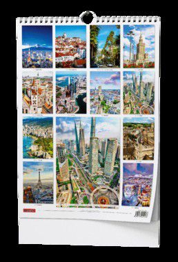Nástěnný kalendář s krásnými obrázky světových metropolí v trendy stylu.