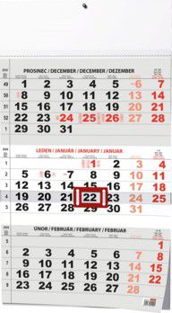 Praktický nástěnný kalendář s tříměsíčním kalendáriem a posuvným jezdcem vhodný do Vaší kanceláře.