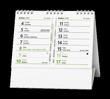 Praktický stolní kalendář se čtrnáctidenním kalendáriem. Malý formát a veselý motiv oživí Váš den.
