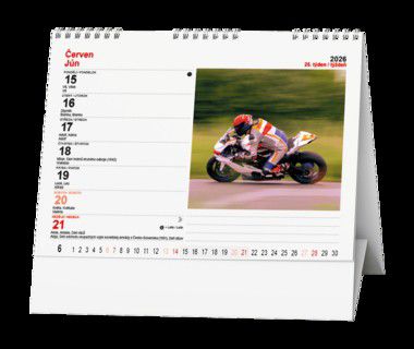 Stolní kalendář s týdenním kalendáriem pro milovníky rychlých motorek.