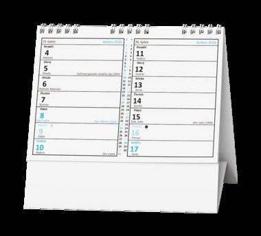 Jednoduchý a praktický pracovní kalendář se čtrnáctidenním kalendáriem v menším formátu.