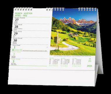 Stolní kalendář s týdenním kalendáriem s obrázky přírodních scenérií.