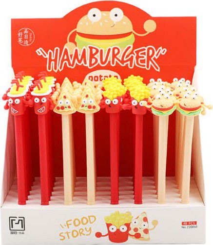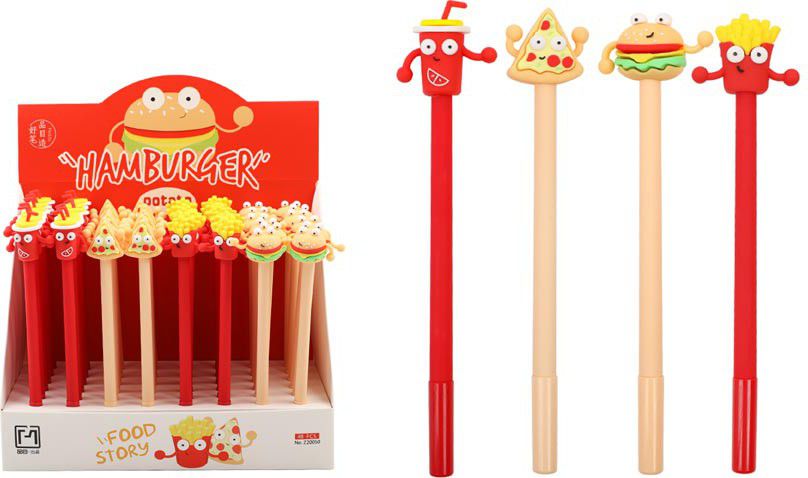 - Gelové pero Fancy - Food Story přináší dávku radosti díky svým hravým motivům oblíbených pochoutek (pizza, hranolky, hamburger a nápoj) vás budou doprovázet při každém tahu.