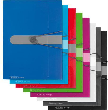 Easy orga, zavírání s gumičkou na plastový kroužek, PP, 3 chlopně, kapacita 300 listů.