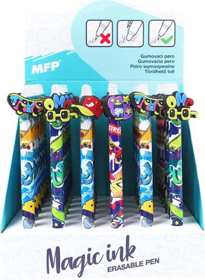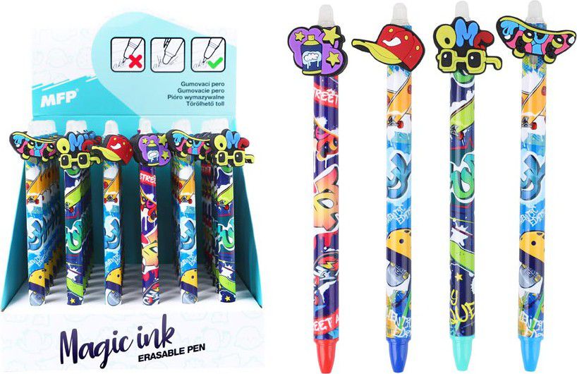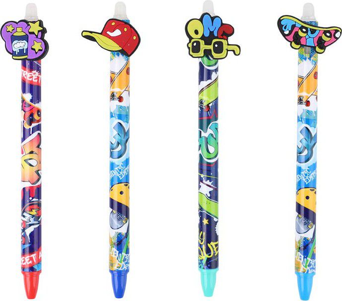 - Gumovací kuličkové pero s motivy street art přináší hravý a moderní vzhled inspirovaný pouličním stylem.