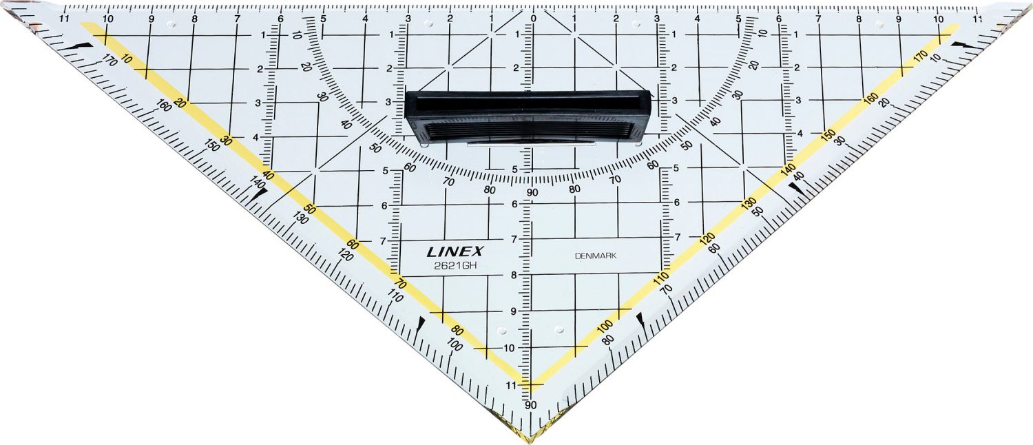 - Multifunkční trojúhelník kombinuje pravítko, rýsovací trojúhelník a úhloměr v jednom.