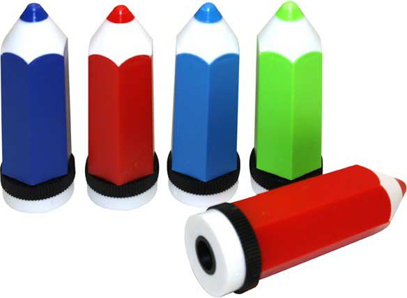 - Plastové, školní ořezávátko/strouhátko se zásobníkem na odpad ve tvaru tužky.