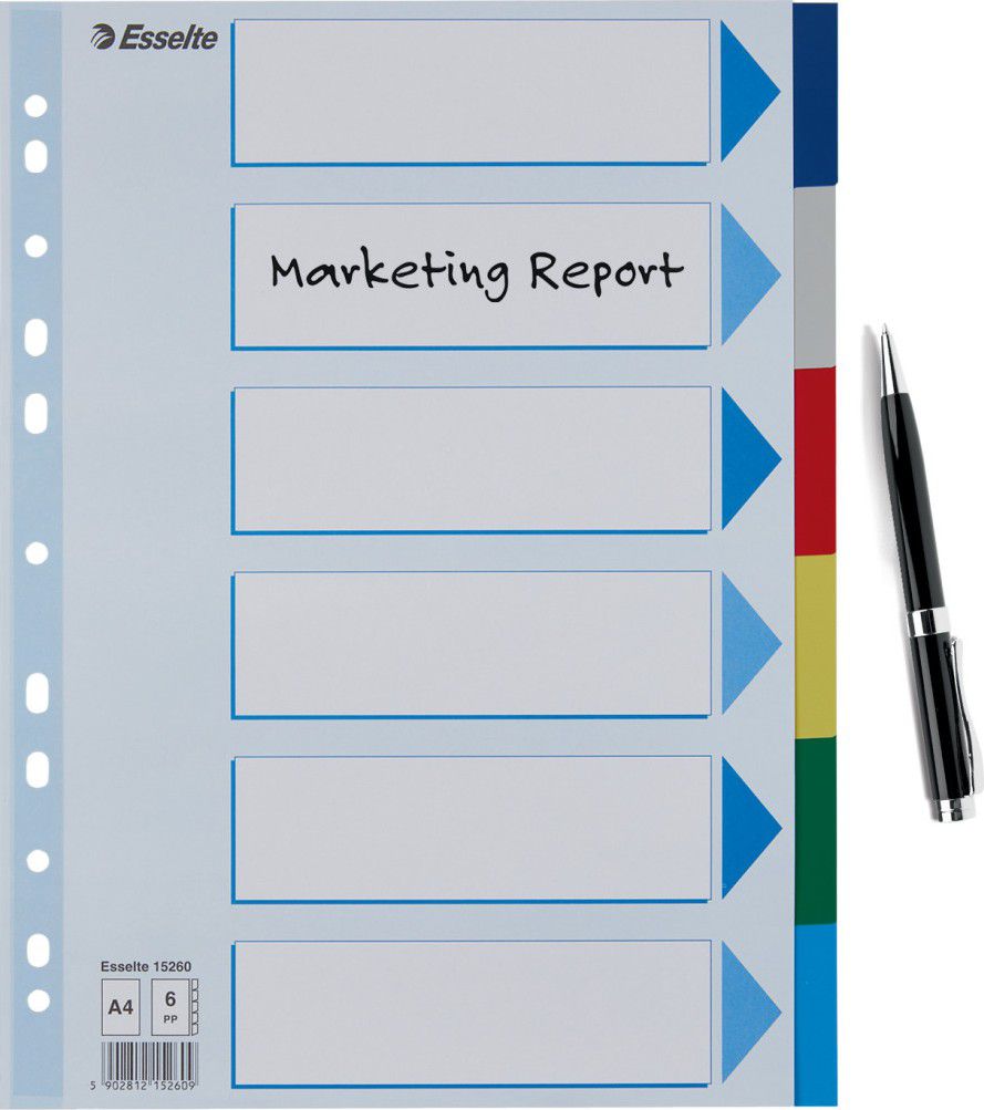 - Multi-perforace umožňuje použití rozlišovačů v pákových i kroužkových pořadačích.