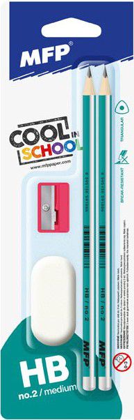 - BALENÍ OBSAHUJE: 1 ks mazací pryž, 2 ks tužka č.2 - výborná na běžné psaní a kreslení, univerzální použití, 1 ks plastové školní ořezávátko na tužky bez odpadní nádoby s jedním otvorem.