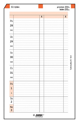 - levá strana od mechaniky: přehled celého týdne (pondělí - neděle)