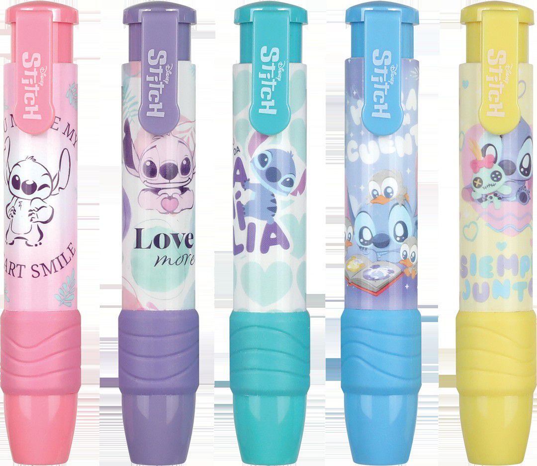 Praktická vysouvací pryž v designu připomínající pero s roztomilým motivem usměvavého Stitche.