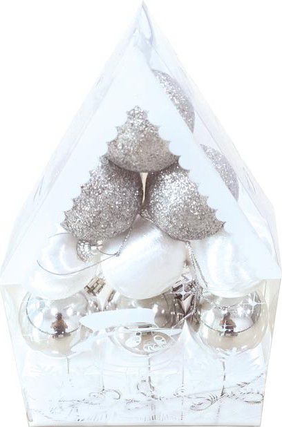 - BALENÍ OBSAHUJE: 6 ks různých stříbrných baněk, 6 ks bílých baněk.