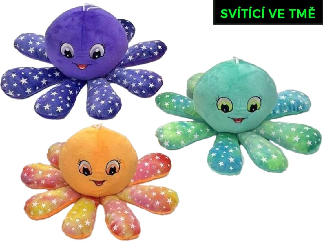 Popis Chobotnička plyšová 10cm, svítící ve tmě, 3 barvy
