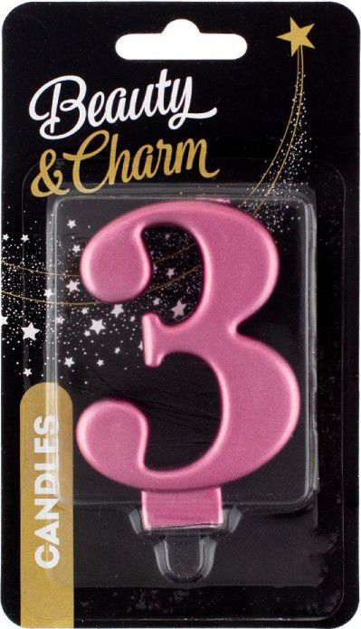 Dortová svíčka číslice 3 metalická, růžová 8cm