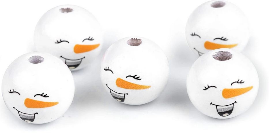 Popis Dřevěné korálky s obličejem sněhulák 1 Ø20 mm, 10ks