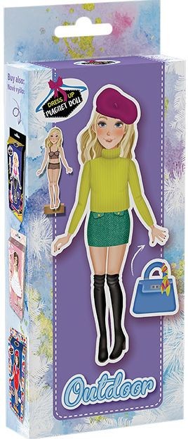 - Balení obsahuje oblékací postavičku, 3 archy magnetických částí oblečení, bot a doplňků a dřevěný podstavec.