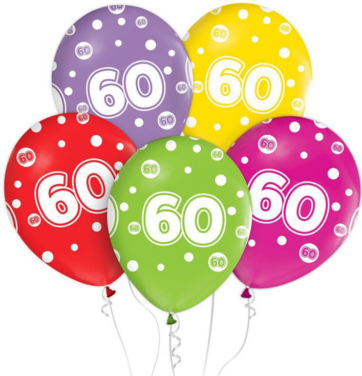 Popis Nafukovací balónky 5ks s potiskem číslice 60