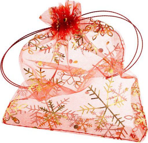 - Vánoční dárkový sáček z organzy se zlatým potiskem vloček.