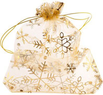 - Vánoční dárkový sáček z organzy se zlatým potiskem vloček.
