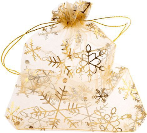 - Vánoční dárkový sáček z organzy se zlatým potiskem vloček.