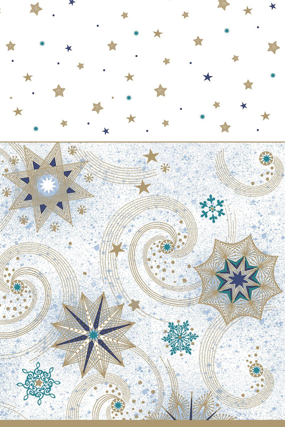 Popis Papírový ubrus 180 cm Gold Turqoise Stars