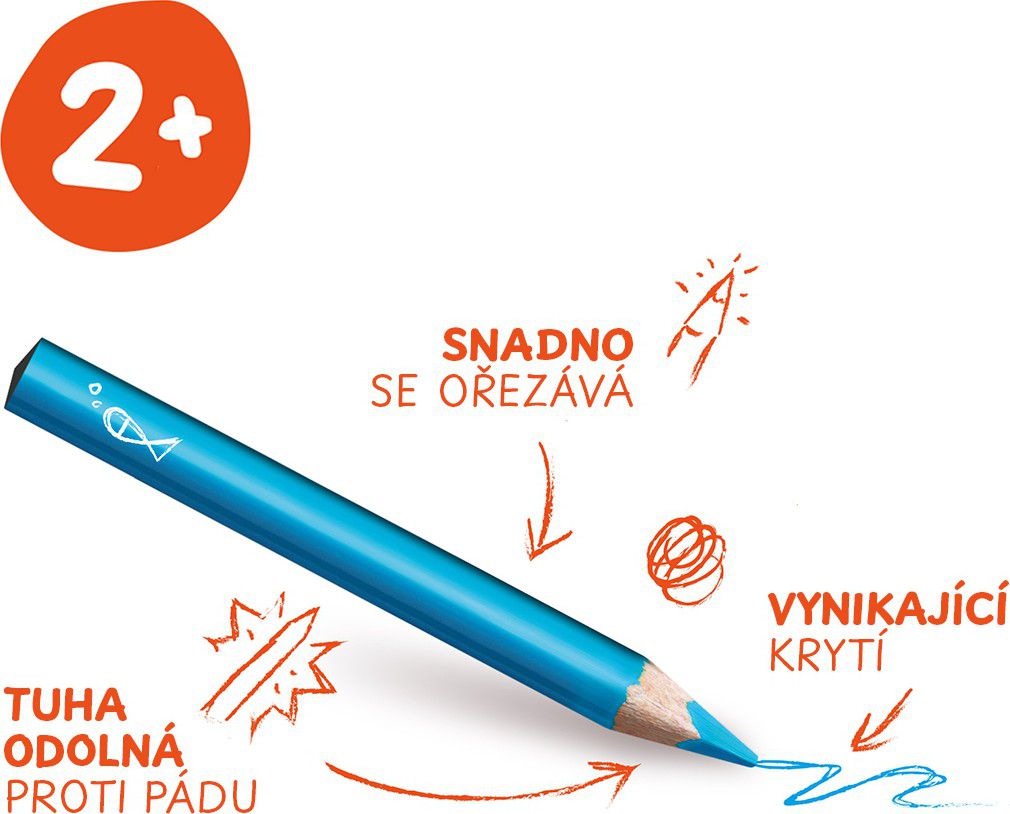 Pastelky, které zvládnou dětské kreslení i pád ze stolu. Extra široké pro snadný úchop.Odolné tělo z pryskyřice neobsahuje dřevo, což zaručuje, že se pastelka jen tak nerozštípne. Odolná tuha, která se neláme. Zářivé a jasné barvy, pro první umělecké výtvory. Snadno se ořezávají. U dětí mladších 3 let doporučujeme dohled dospělé osoby.