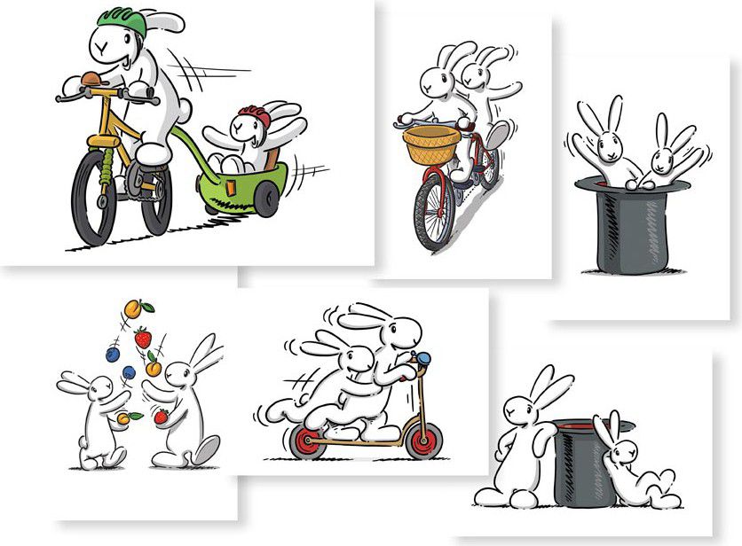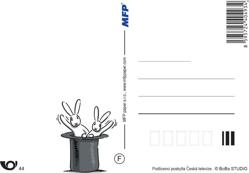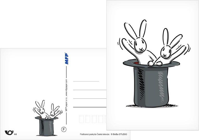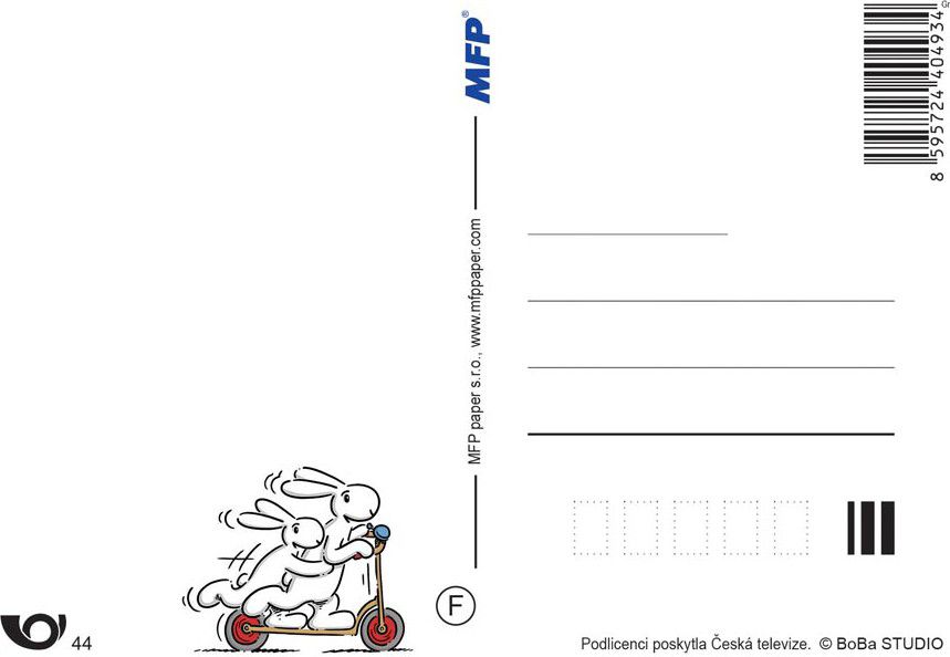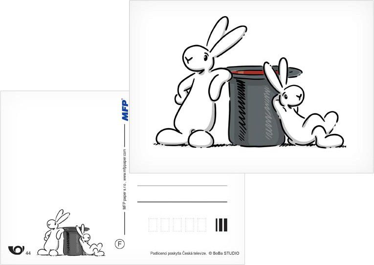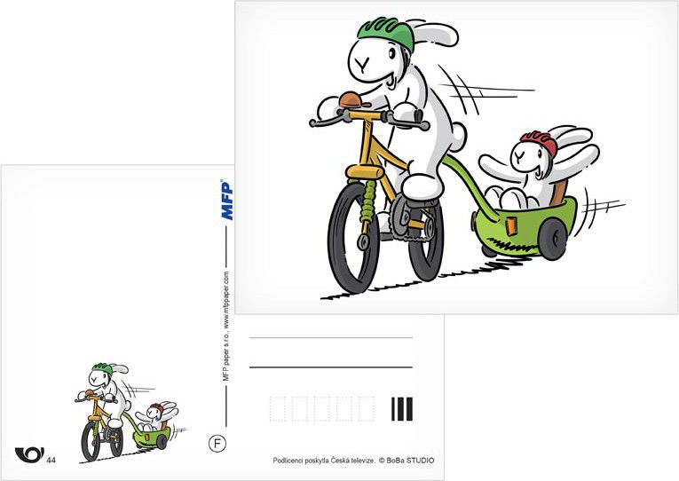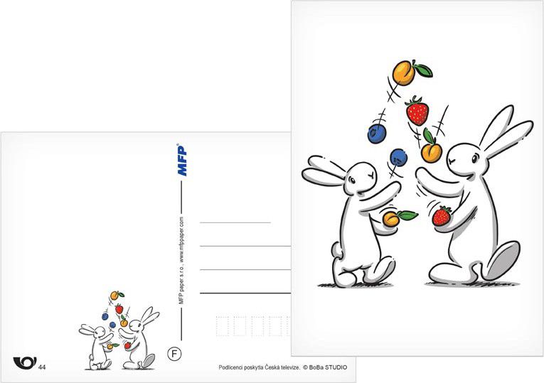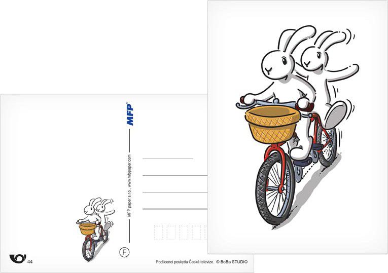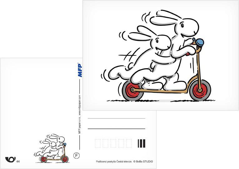 - Pohlednice s dětským motivem oblíbených postaviček Boba a Bobka z populárního českého animovaného seriálu.