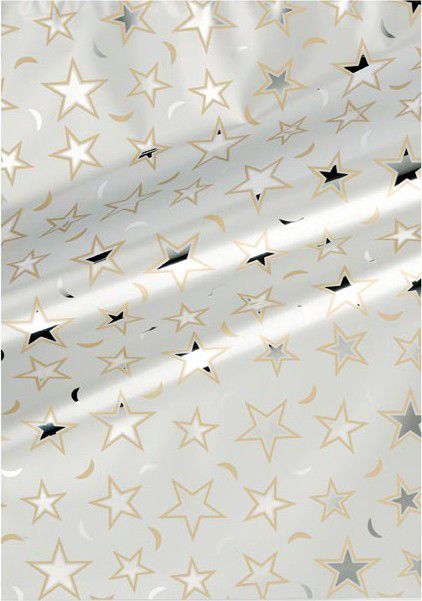Vánoční dárkový sáček, vyrobený z lesklého materiálu, zdobený elegantním zlatým motivem hvězd. Umožňuje snadno zabalit různé druhy drobných dárků bez nutnosti použití balicího papíru. Praktický a elegantní způsob balení, který šetří čas i námahu. Sáček můžete uzavřít vázací stuhou a tím ho dozdobit.