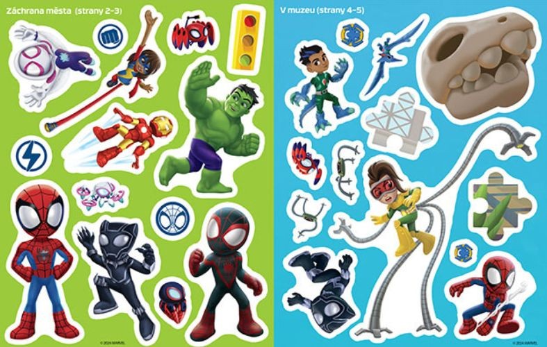 - Samolepková knížka obsahuje 16 barevných stran a 8 stran samolepek k dolepení.