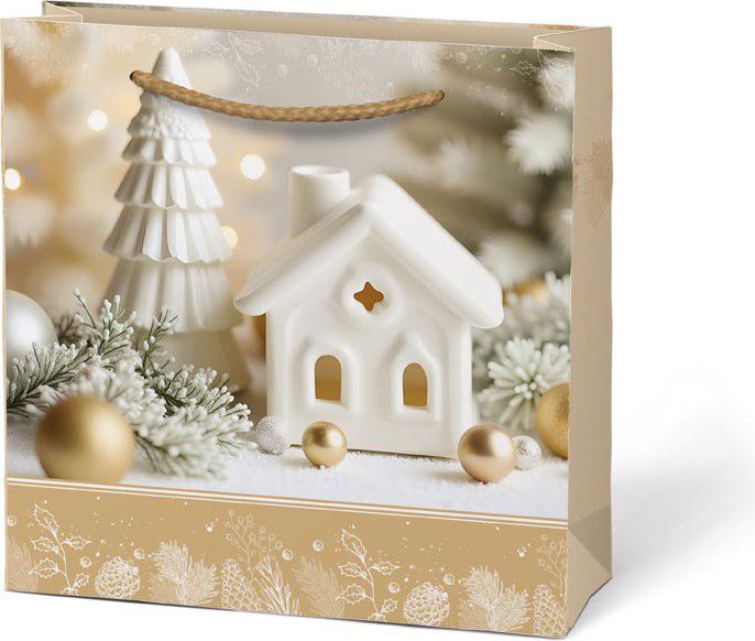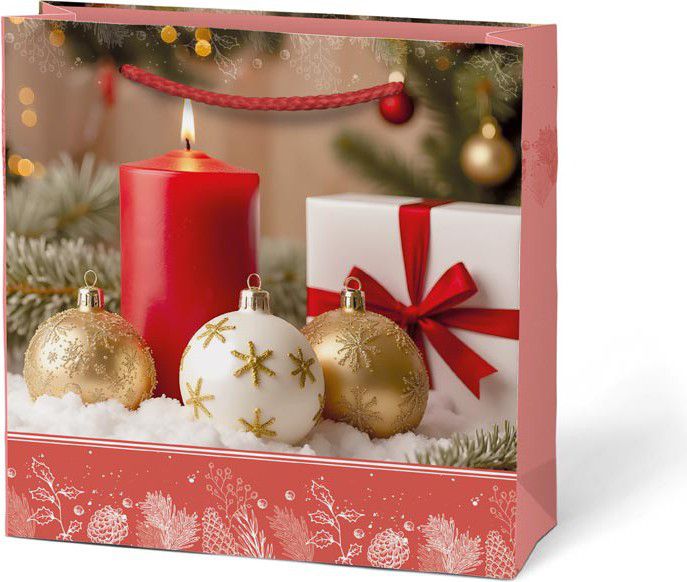 Chcete, aby váš dárek zaujal už na první pohled? Vánoční dárková papírová taška MFP T2 je elegantním a praktickým řešením, které ušetří čas při balení a přitom dodá vašemu dárku slavnostní vzhled. Je ideální pro menší krabičky, kosmetiku, svíčky, sladkosti nebo jiné drobnosti, které chcete věnovat stylově. Taška je vyrobena z kvalitního pevného papíru a doplněna odolným provázkovým uchem pro pohodlné přenášení.