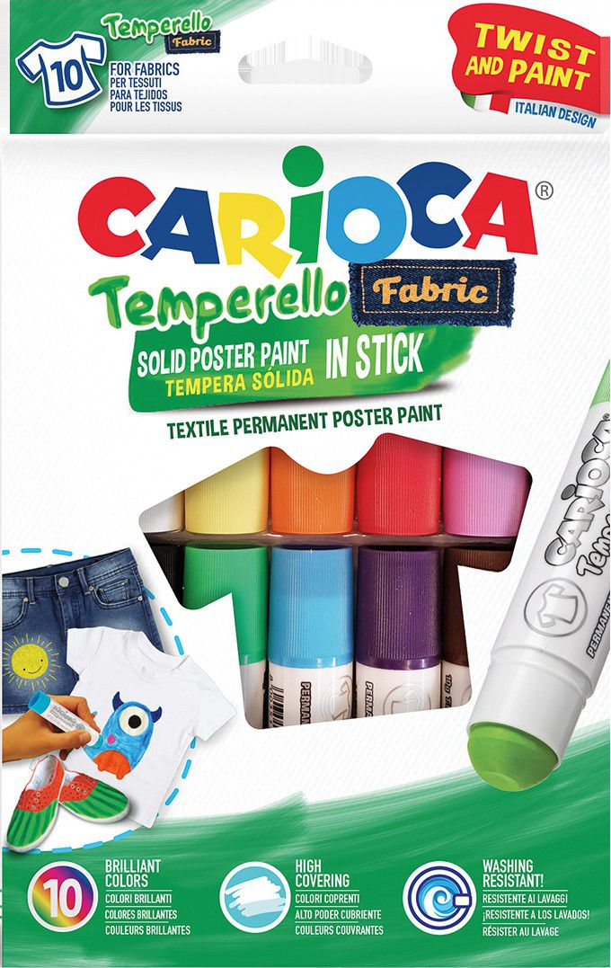 Temperové barvy na textil v tyčince, 10 ks