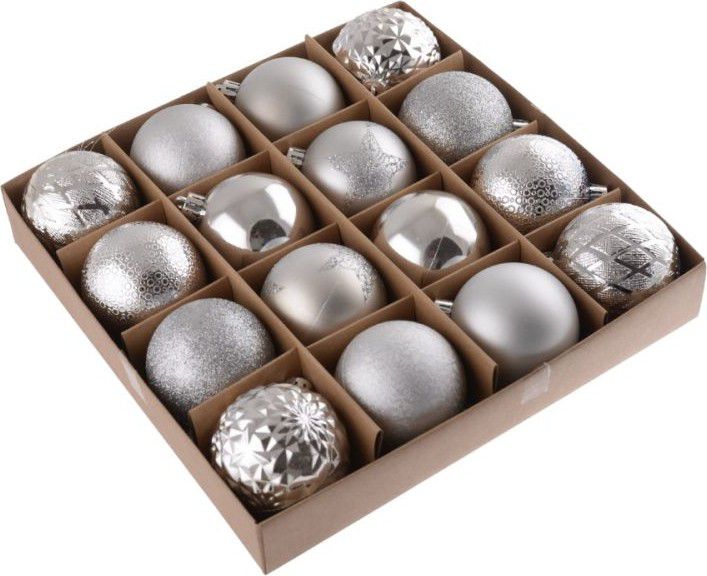 Popis Vánoční baňky 16ks 6cm, plastové, stříbrné
