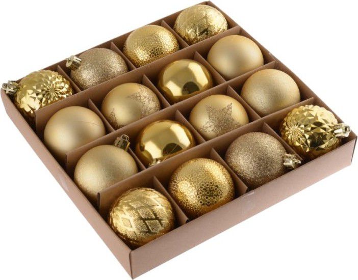 Popis Vánoční baňky 16ks 6cm, plastové, zlaté