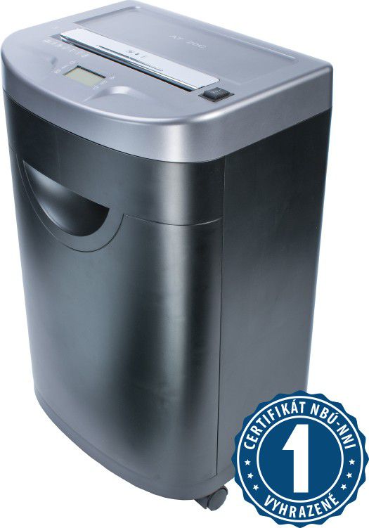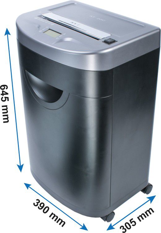 Kvalitní skartovací stroj atraktivního designu, s příznivým poměrem cena/výkon. Vhodný pro skartaci dokumentů o šířce 230 mm. Skartovač je vybaven bezpečnostní funkcí Safe Touch, která zastaví stroj při dotyku vstupní štěrbiny rukou. LCD display ke kontrole zapnutých funkcí. Stroj je standardně vybaven automatickým systémem start/stop, zpětným chodem, tepelnou pojistkou motoru proti přehřátí, signalizací přeplněného koše. Příležitostně lze skartovat sešívací a kancelářské sponky. Samostatný vstup na kreditní karty nebo CD. Tichý chod stroje. Lehce vyprázdnitelná odpadní nádoba o objemu 35 l. Rozměry: 390 x 305 x 645 m. Hmotnost: 18 kg.