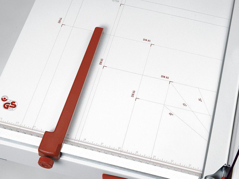 - S automatickým přítlakem stohu papíru pro precizní, komfortní řezání, s funkcí EASY LIFT – páka k nadzvednutí přítlaku pro pohodlné odebrání řazaného materiálu.