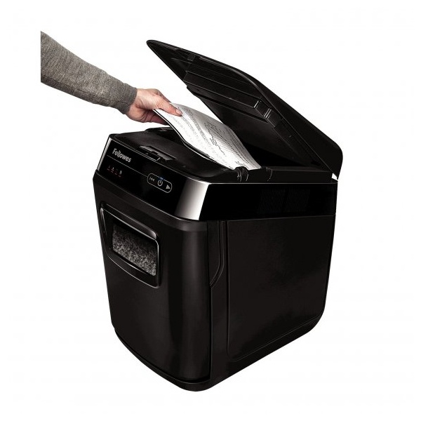 Skartování nikdy nebylo snazší. Revoluční skartovač značky Fellowes, vás o tom přesvědčí. Jen nalož, zapni a běž. Tento automatický skartovací stroj vám umožní věnovat se prospěšnějším kancelářským činnostem, nežli je opakované postávání u běžného skartovače. Zařízení je schopno na jeden pracovní cyklus při automatickém podávání skartovat až 200 listů 70g papíru v mikrořezu 2 x 14 mm. Skartovač je vybaven vstupní štěrbinou pro ruční podání až 9-ti listů papíru. (vstup 220 mm pro ruční podání papíru) Výkonný řezací mechanismus zpracuje při automatickém podávání sešívačkou sešité papíry. Při manuálním podávání i kreditní karty.