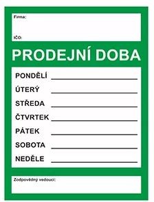 Popis PRODEJNÍ DOBA A4 - plast. cedulka zelená