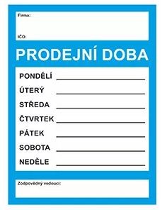 PRODEJNÍ DOBA A4 - plast. cedulka