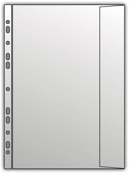 Otevřená delší strana chráněná chlopní - přehybem, S eurozávěsem, folie matná. Tloušťka 100 mic. Formát B4.