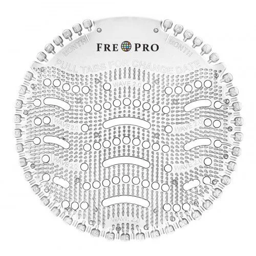 Aromatické a gelové vonné sítko FrePro Wave2 do pisoáru s indikátorem data výměny.Velice příjemná a decentní vůně, Zimolez,která je 15x intenzivnější než mají běžná vinylová sítka. Eliminuje pachy a optimizuje tvorbu bakterií, zabraňuje šíření pachů hned v jejich zárodku. Výrobce garantuje plnou účinnost po dobu 30 dnů. Speciálně vyvinutý design zajišťuje rychlejší a účinnější splachování obsahu pisoáru, mísa se průběžně čistí. Úspora času pro úklid až 50%. Transparentní design umožňuje průběžnou kontrolu stavu odpadních cest, účinněji brání ucpávání. V procesu působení sítko uvolňuje účinné bakterie– pohlcovače pachů a vonné látky, proto se mírně smršťuje. Kulatý tvar umožňuje umístění do každého typu pisoáru. Neobsahuje žádné látky poškozující ozon, ani žádné látky ohrožující lidské zdraví. Delší bodlinky účinněji zabraňují rozstřikávání moči, usnadňují očistu pisoáru a uvolňují více vůně do prostoru. Sítko se vkládá do pisoáru bodlinkami nahoru.