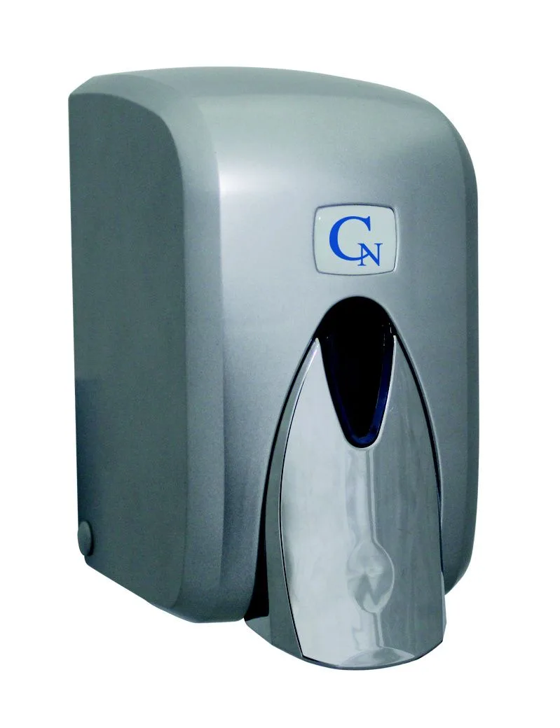 Nástěnný dávkovač tekutého mýdla s obsahem zásobníku na dolévání 500 ml. Vyroben je ze střírně pokoveného plastu.