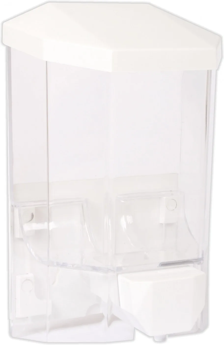 Nástěnný dávkovač na tekuté mýdlo, obsah zásobníku na dolévání je 500 ml. Je vyroben z průhledného plastu v kompaktním provedení. Lze montovat na vruty i samolepky.