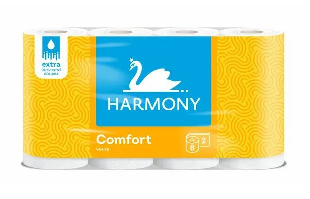 2vrstvý toaletní papír Harmony Comfort, balení obsahuje 8 rolí. Vhodný pro každodenní použití, zajišťuje pohodlí a účinnost. Celý popis