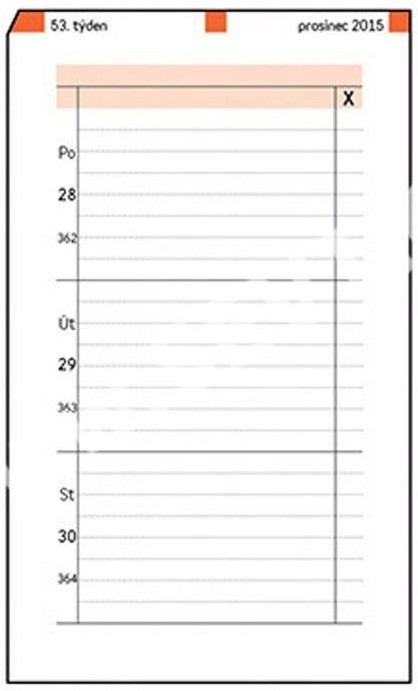 Termínovaný formulář pro týdenní plánování do diářů ADK formátu A7. Celý týden na jeden pohled.